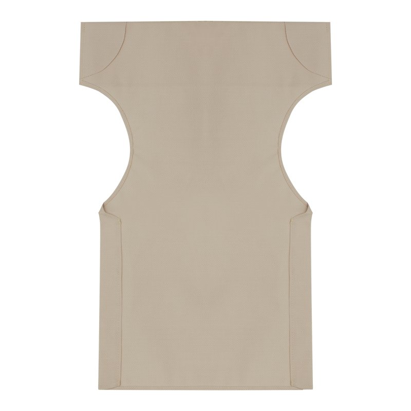 - Textilene: Το textilene είναι ένα εξαιρετικά ανθεκτικό υλικό που χρησιμοποιείται ευρέως σε επίπλωση εξωτερικών χώρων και εξαρτήματα. Αποτελείται από πολυεστερικές ινώδεις που επικαλύπτονται με PVC (πολυβινυλοχλωρίδιο), δημιουργώντας ένα υλικό που συνδυάζει ανθεκτικότητα, αντοχή στις καιρικές συνθήκες και εύκαμπτη υφή. Το υλικό αυτό επιτρέπει τη διέλευση του αέρα, βοηθώντας στη διατήρηση μιας δροσερής αίσθησης κατά τη χρήση.