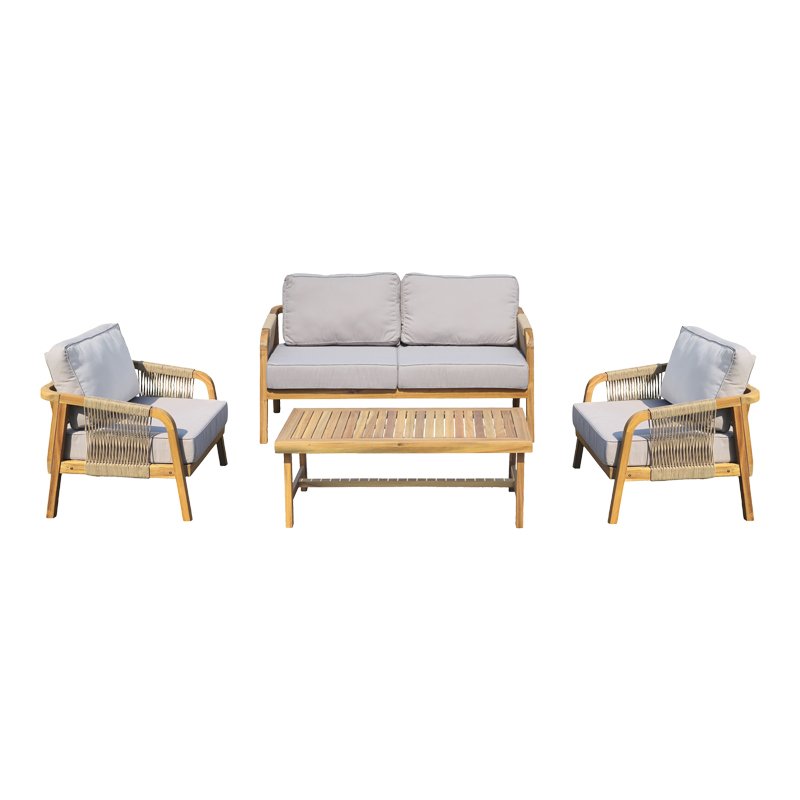 - Σκελετός κατασκευασμένος από μασίφ ξύλο ακακίας που συνδυάζεται αρμονικά με πλέξη από σχοινί PP, προσφέροντας στιλ και αντοχή σε φυσικό χρώμα.