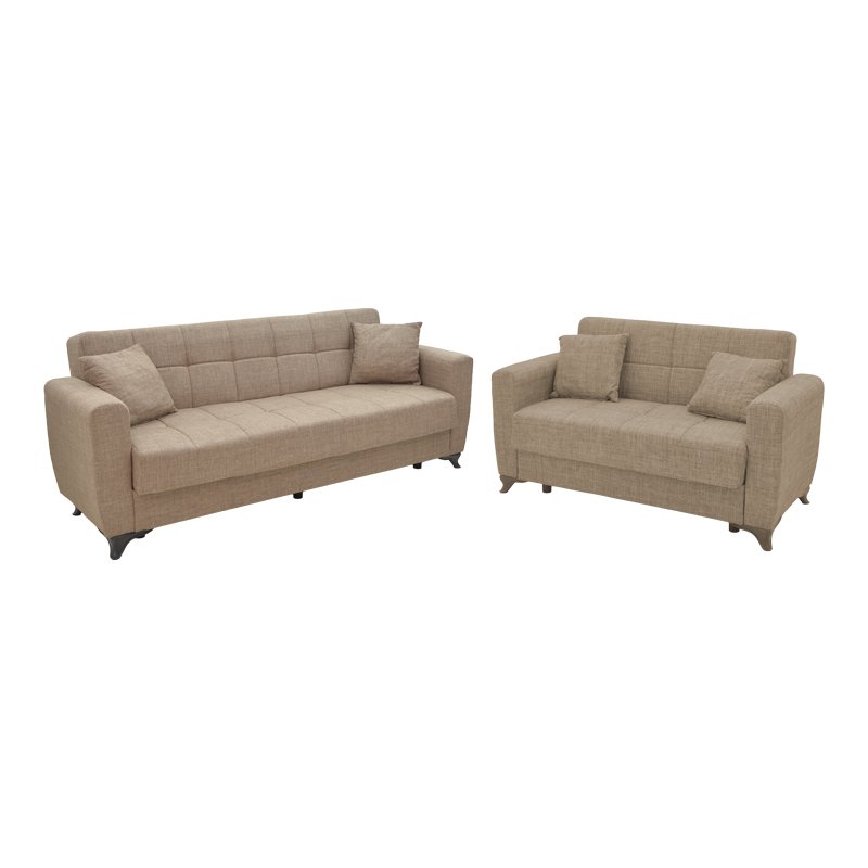 1. Καναπές-κρεβάτι με αποθηκευτικό χώρο τριθέσιος Modesto House Genius ανοιχτό καφέ ύφασμα 215x85x80εκ