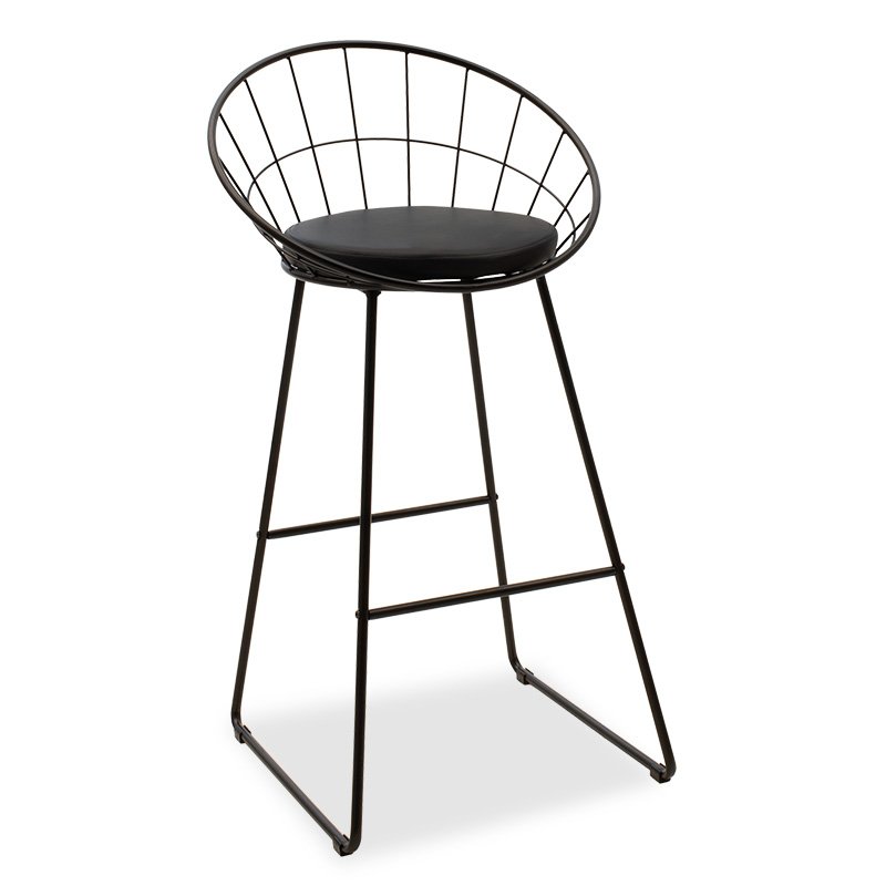 Σκαμπό μπαρ Seth House Genius μεταλλικό μαύρο με μαξιλάρι PVC μαύρο