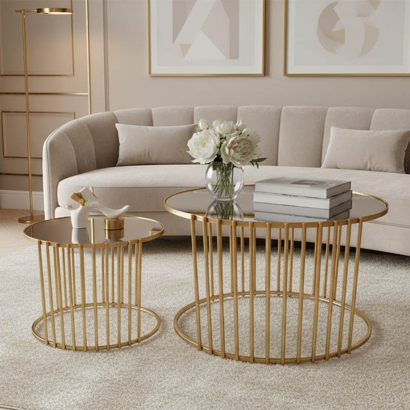 Tραπέζια σαλονιού Boron Inart χρυσό σετ 2τεμ μέταλλοTραπέζια σαλονιού Boron Inart χρυσό σετ 2τεμ μέταλλο